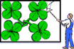 Vier vierblättrige Kleeblatt Sammler klebten vier vierblättrige Kleeblätter auf klebrige Blätter!